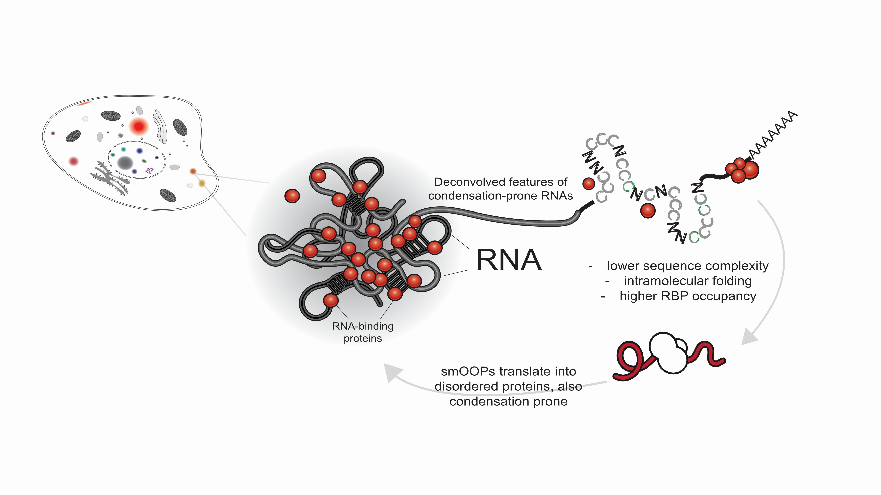 Inside cells, RNAs and proteins form tiny, liquid-like droplets called biomolecular condensates. These droplets are essential for organizing cellular life, yet why some RNAs cluster more readily than others has remained unclear. Disruptions in condensate formation are linked to developmental defects, cancer, and neurodegenerative diseases. Researchers at Karlsruhe Institute of Technology (KIT) have now identified a new class of RNA called smOOPs and gained a better understanding of how biomolecular condensates form. The findings were published in the journal Cell Genomics. (DOI: 10.1016/j.xgen.2025.101065)