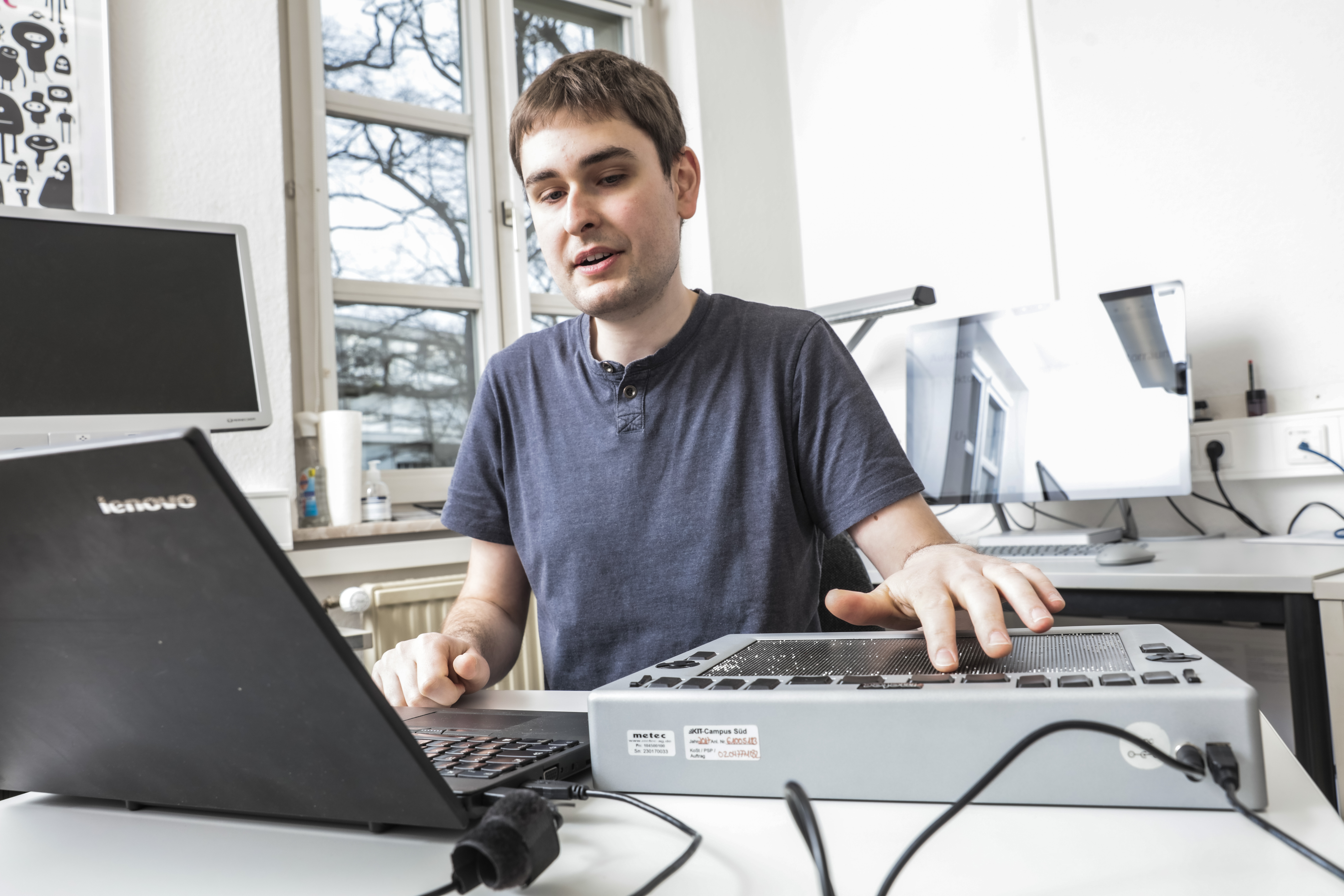 Seit 1987 berät und unterstützt das Zentrum für digitale Barrierefreiheit und Assistive Technologien (ACCESS@KIT) des KIT Studierende und Studieninteressierte mit Sehbehinderung und Blindheit. Es ermöglicht so ein selbstbestimmtes und inklusives Studium am KIT. Zudem erforscht es neue Assistive Technologien und Zugänge zu MINT-Studiengängen. Seit 2020 ist ACCESS@KIT auch Teil des Reallabors „Digitale Barrierefreiheit und Assistive Technologien“, das im Zuge des Zukunftskonzeptes des KIT gefördert wird.